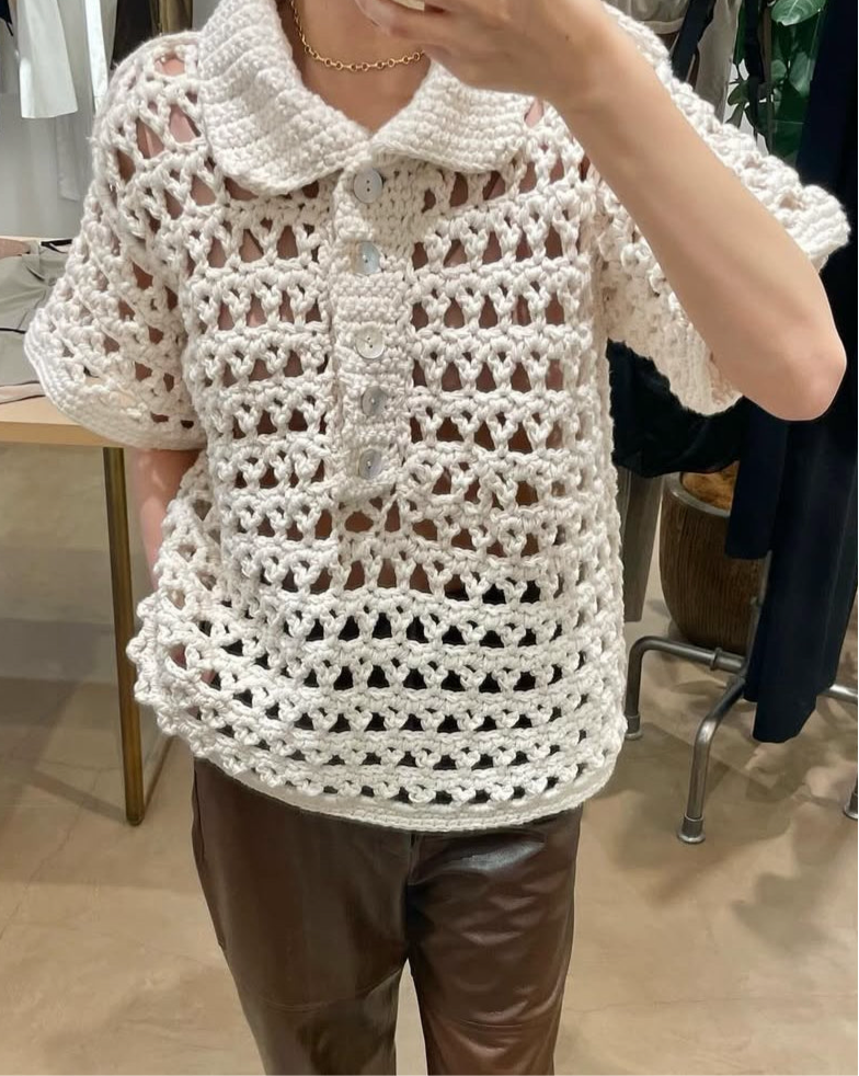 The perfect polo to wear with your favorite worn in denim. Our Penelope Pullover will slot seamlessly into your wardrobe rotation. It's knitted from soft cotton with an open knit construction. Complement the shiny iridescent mother of pearl buttons with your favorite jewelry.