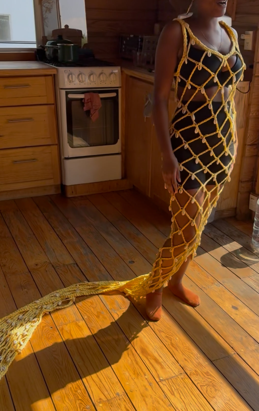 Hand crocheted in Peru, slip on style light weight skirt with elasticized waistband.
